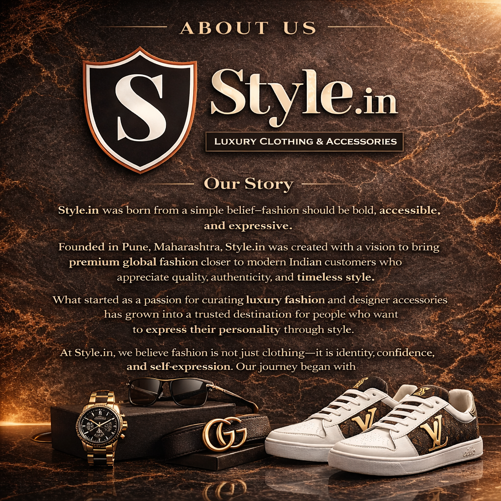 Founded in Pune, Maharashtra, Style In was created with a vision to bring premium global fashion closer to modern Indian customers who appreciate quality, authenticity, and timeless style.