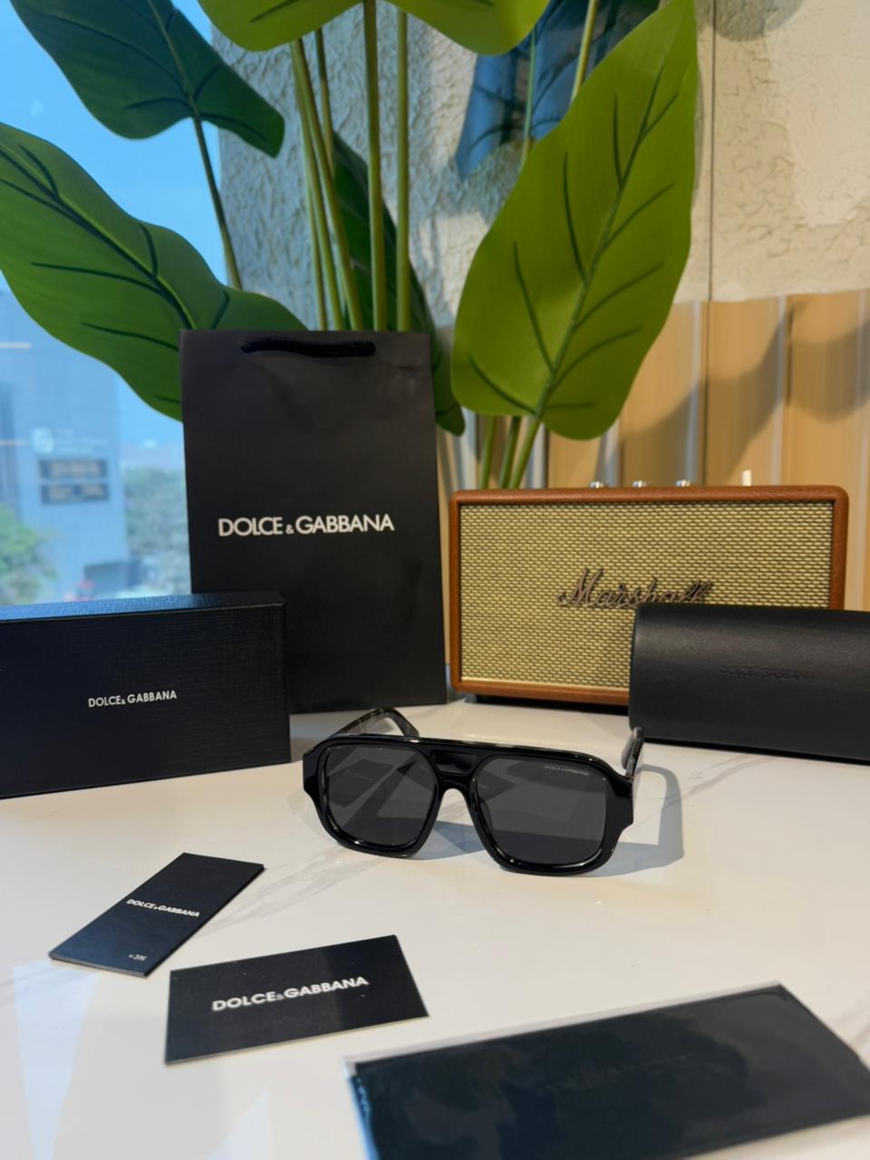 Luxury Dolce & Gabbana square sunglasses with black-grey havana acetate frame and UV-protected grey lenses.