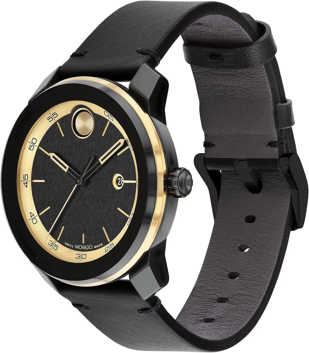 - Black Textured Dial with signature Movado dot at 12 o’clock for a refined minimal look.