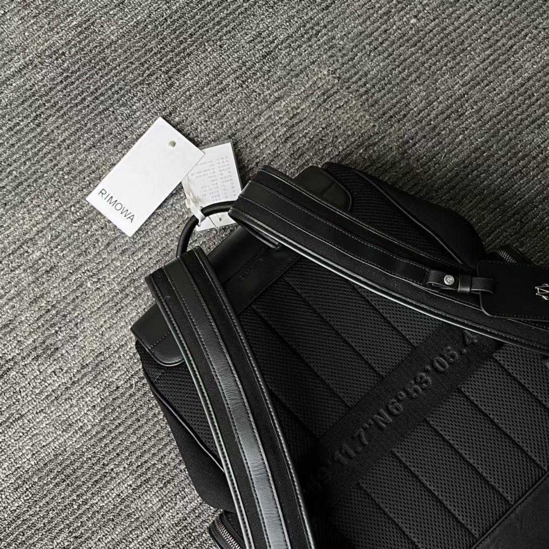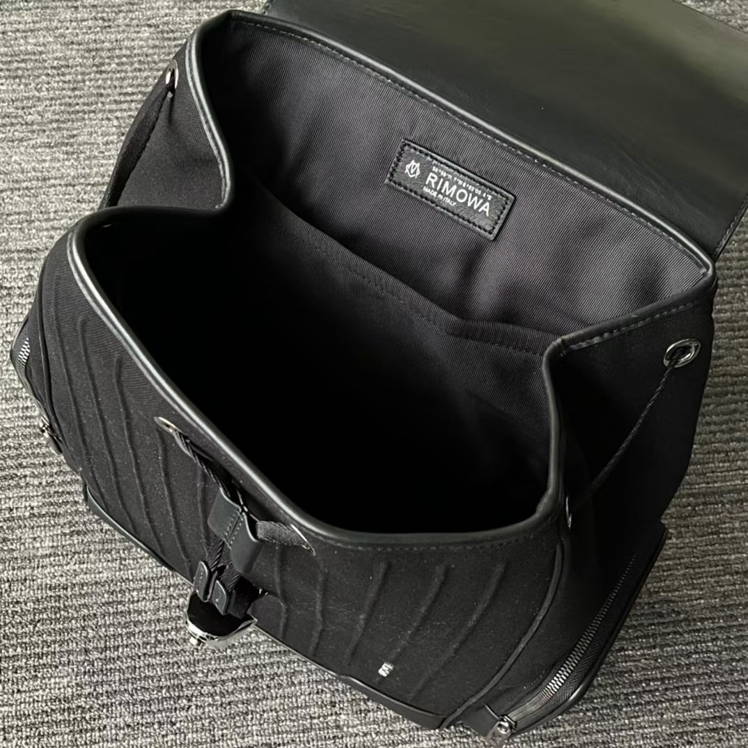 Inside, the spacious compartment includes a padded 16-inch laptop sleeve, large drawstring storage area, and multiple utility sections for everyday essentials. The sleek canvas finish and signature grooved design detailing reflect RIMOWA’s iconic travel heritage.